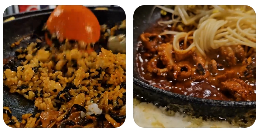 셋트 구성에는 주꾸미 볶음과 함께 곁들일 수 있는 다양한 찬들이 포함되어 있어 한 끼 식사로서의 완성도가 매우 높습니다. 아삭한 콩나물과 향긋한 깻잎, 그리고 이곳만의 특제 마요 소스를 곁들이면 매운맛을 중화시키면서도 한층 더 풍부한 맛의 스펙트럼을 경험할 수 있습니다. 특히 마지막에 남은 양념에 볶아 먹는 날치알 볶음밥은 고소한 김가루와 톡톡 터지는 날치알의 식감이 어우러져, 식사의 대미를 장식하는 필수 코스로 손꼽히며 방문객들 사이에서 '반드시 먹어야 할 별미'로 입소문이 자아납니다.