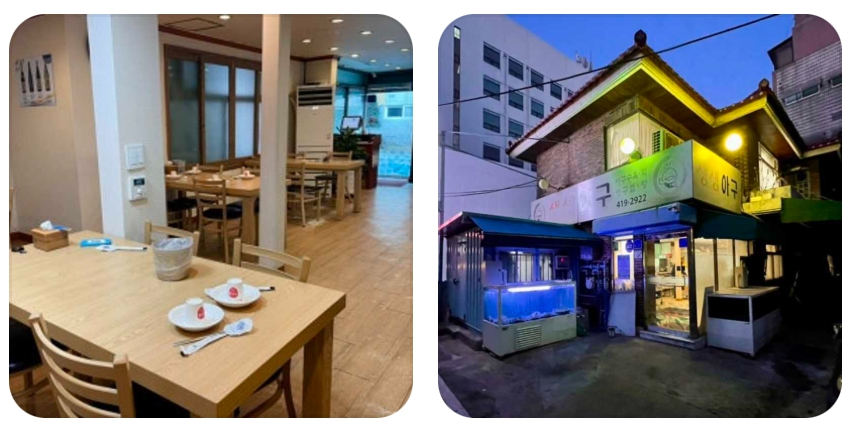 우리가 흔히 접하는 아귀는 대개 냉동 상태로 유통되어 매콤한 양념에 버무려진 '찜' 형태가 일반적입니다. 그러나 이곳에서는 수조에서 갓 꺼낸 생아귀를 이용한 아구회를 선보이며 차원이 다른 신선함을 선사합니다. 아귀는 성질이 급해 육지까지 살아있는 상태로 운반하기가 매우 까다로운 어종으로 알려져 있습니다. 그럼에도 불구하고 이곳의 수조를 가득 채운 아귀들은 그 압도적인 비주얼만큼이나 놀라운 맛의 세계를 예고하며, 방문객들에게 생경하면서도 강렬한 첫인상을 남깁니다.