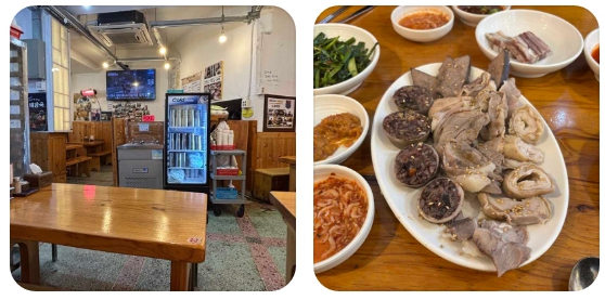 순대국 내부를 가득 채운 내용물의 양 또한 '인정 맛집'다운 넉넉함을 자랑합니다. 푸짐하게 들어간 머릿고기와 내장, 그리고 메인인 찹쌀순대가 뜨거운 국물 속에서 조화를 이루며 완벽한 한 그릇을 완성합니다. 특히 뚝배기 바닥이 보일 때까지 식지 않는 온도는 마지막 한 방울까지 국물의 풍미를 온전히 즐길 수 있게 해줍니다. 기호에 따라 다대기나 들깨가루를 첨가하여 자신만의 스타일로 즐길 수 있지만, 처음에는 아무것도 넣지 않은 채 본연의 구수한 맛을 먼저 느껴보는 것이 이곳의 전통을 가장 잘 즐기는 방법으로 추천되었습니다.